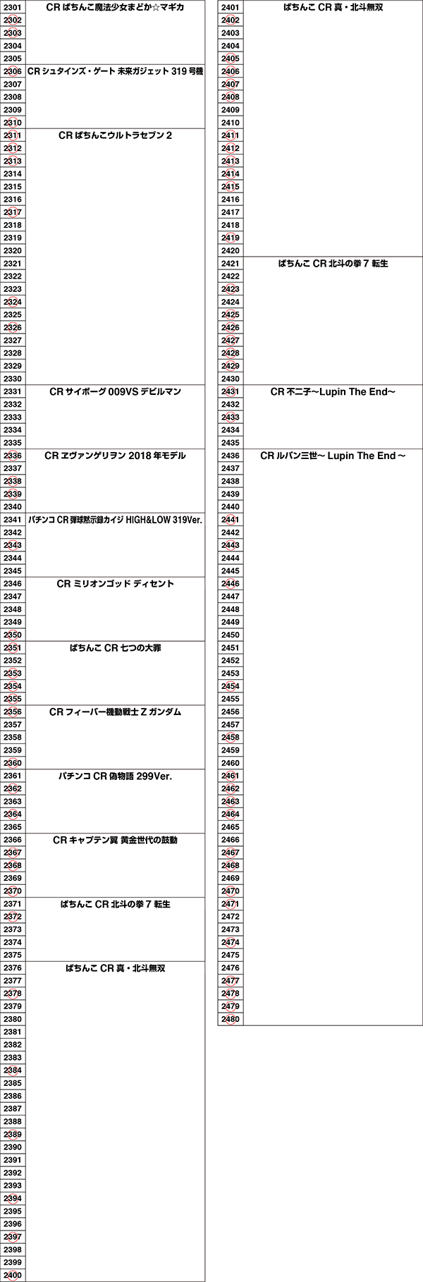 5台設置されている「ぱちんこCR一騎当千 サバイバルソルジャー」では、すべての台に赤丸をチェック。