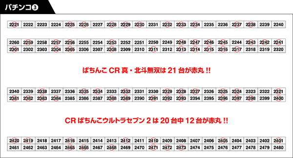パチンコの「ぱちんこCR真・北斗無双」にも、赤丸をつけるべき台が多数!