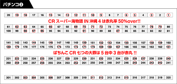 「CRスーパー海物語IN沖縄4」は赤丸率が50%越えと、抜群の存在感を放っていた。