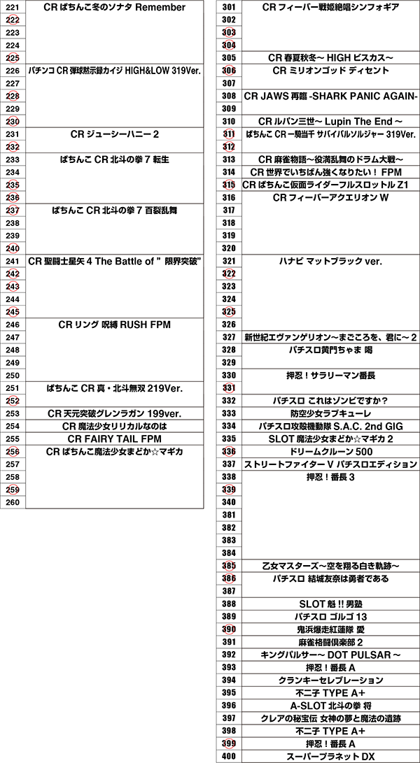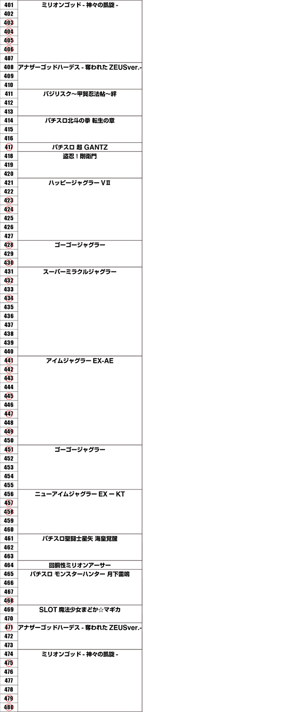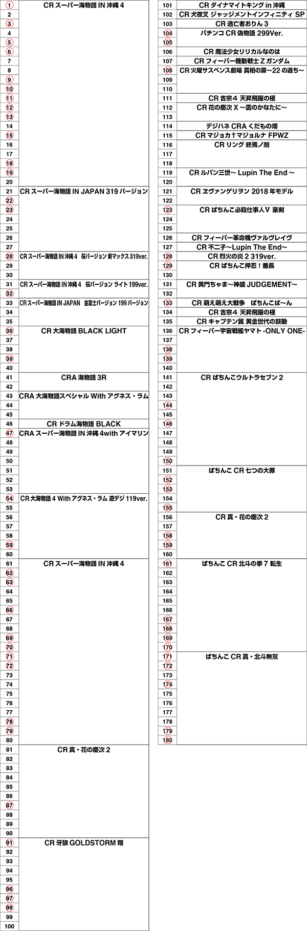 また、定番のジャグラーシリーズにも多数の赤丸をつけた。