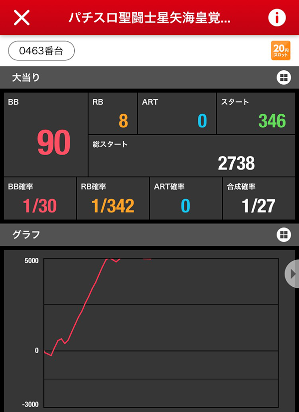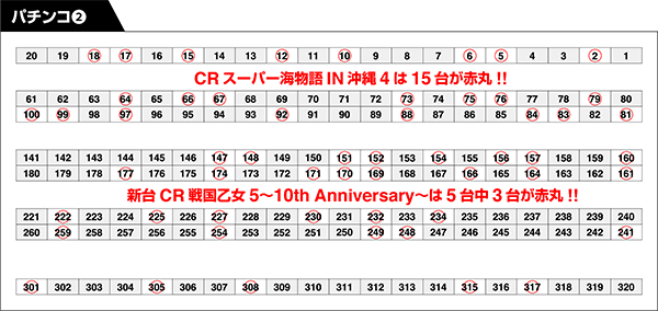 シマ内には、理想的といえる展開で遊技をおこなうプレイヤーが多数! 赤丸をつける手が止まらなくなる予感がした。