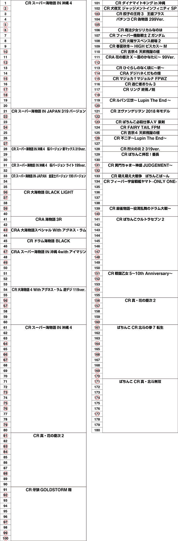 定番のジャグラーシリーズにも多数の赤丸をマーク。
