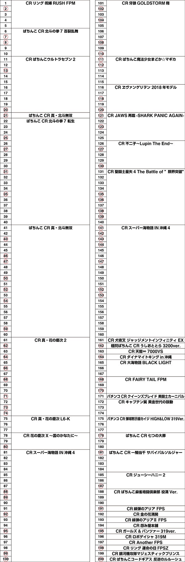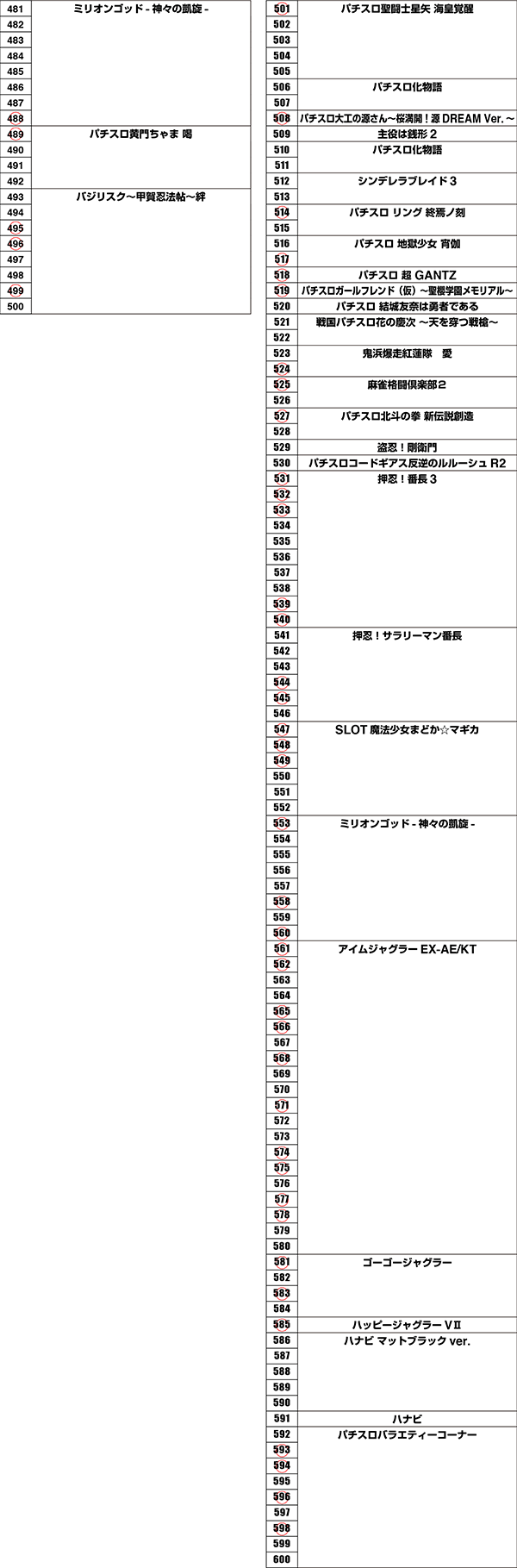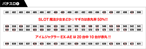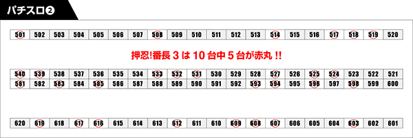 「パチスロエウレカセブンAO」と「押忍!番長3」にも赤丸をマーク。