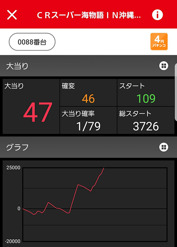 パチンコの「CRスーパー海物語IN沖縄4」においても、赤丸をつける手が止まらない!!