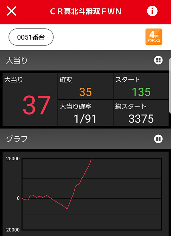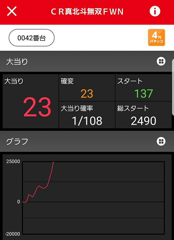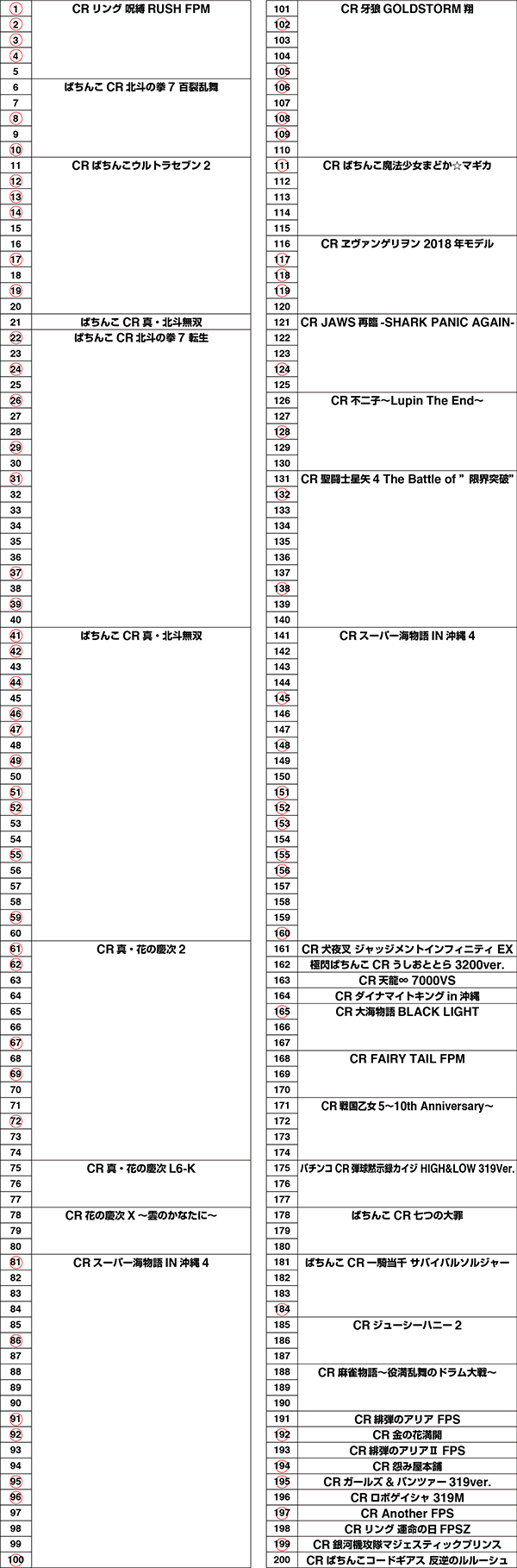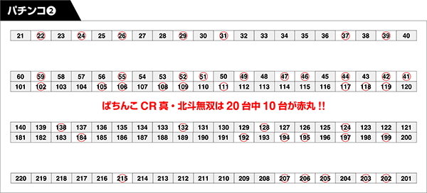 「ぱちんこCR真・北斗無双」には、10個の赤丸を描いた。
