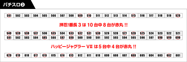 「押忍!サラリーマン番長」にも赤丸をつけるべき台が多く、プレイヤーの笑顔も確認している。