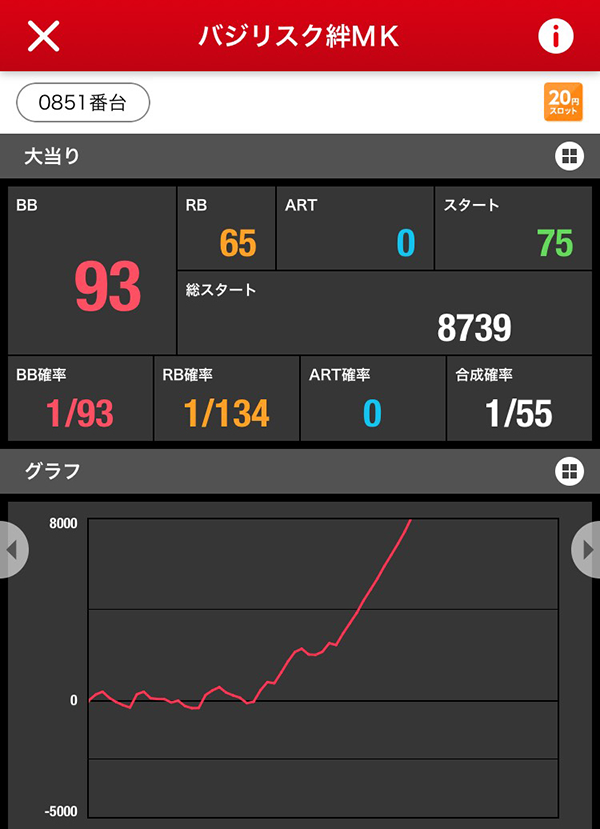 パチスロをみてみると、「バジリスク~甲賀忍法帖~絆」が高稼働!