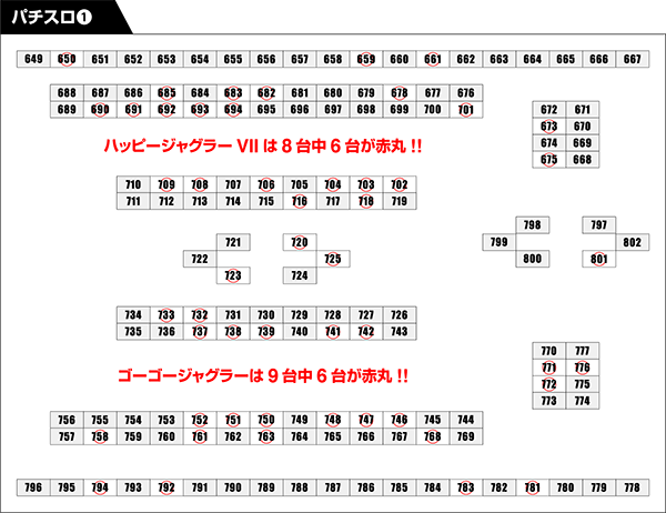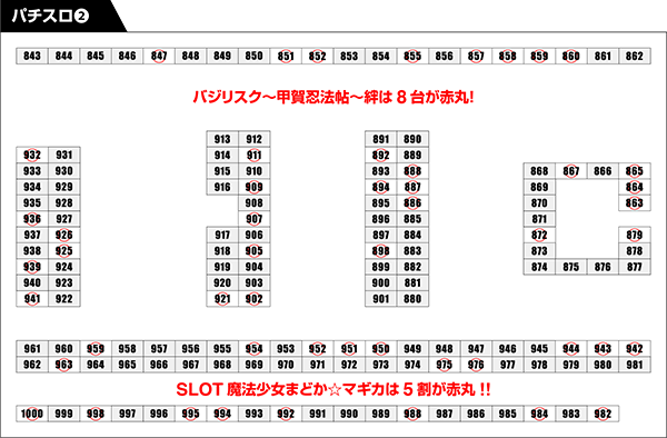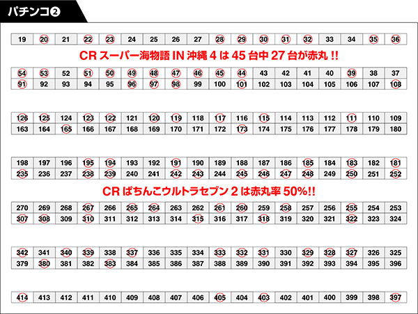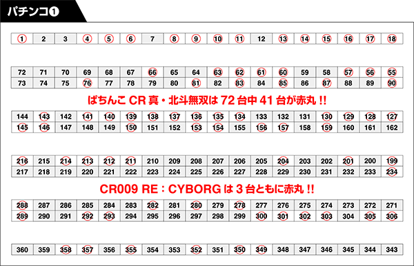 パチンコとパチスロの各シマが活況となっているなかで、いくつの赤丸を描けるのか楽しみである。