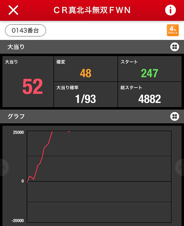 盛況となっていた「ぱちんこCR真・北斗無双」では40個以上の丸をつけた。