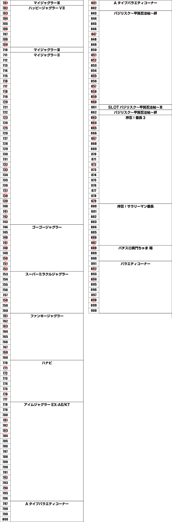 「マイジャグラーⅢ」や「ハッピージャグラーVⅡ」など、さまざまな場所に赤丸をチェックしたことを記憶している。
