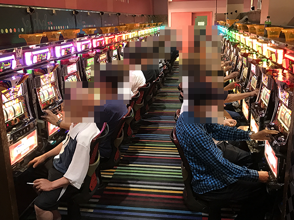 15時頃のパチスロで、盛り上がりが際立っていたのは「マイジャグラーⅢ」や「ジャグラーガールズ」といったジャグラーシリーズ。理想的ともいえる展開で遊技をおこなう様子からは、充実感が得られていることも伝わってきた。