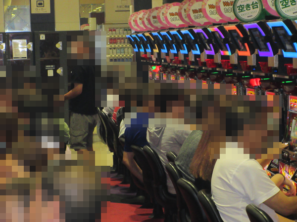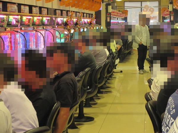 「CRヱヴァンゲリヲン10」など話題の新台も導入されている低貸し玉コーナーも、前日と同じく盛り上がりは大きい。