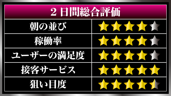 2日間を通してみてもホール内の傾向は大きく変わることはなく、遊技をしているプレイヤーの多くが笑顔を浮かべていた。