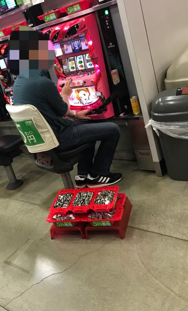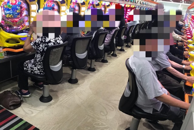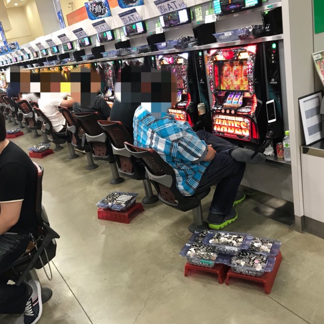 ジャグラーのシマでも合算が2桁の台が数台、箱を使う人が多数いました。