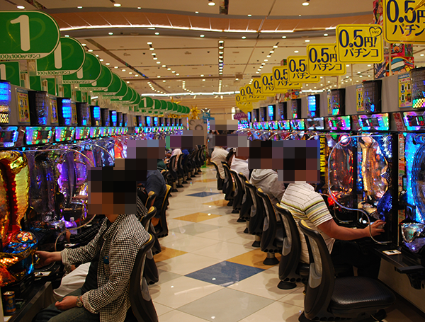 パチスロと同様にパチンコの低貸し玉コーナーも大盛況。