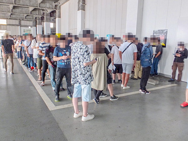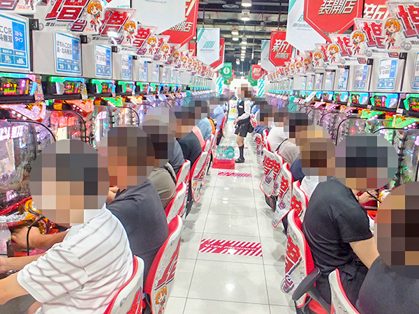 開店前から、たくさんのプレイヤーが列を形成。各人とも遊技を待ちきれない様子だった。