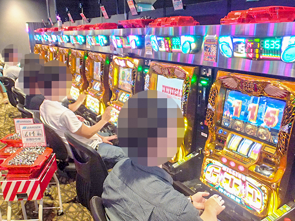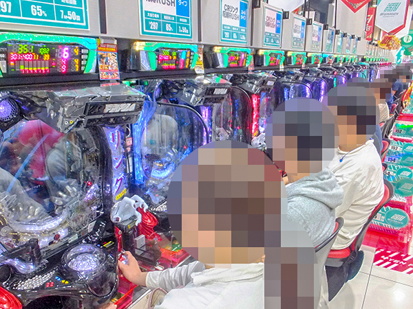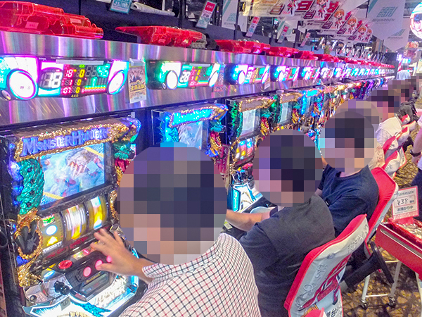 1000円/186枚パチスロは全体的に高稼働。機種を問わず、どこのシマでも活気が感じられた。