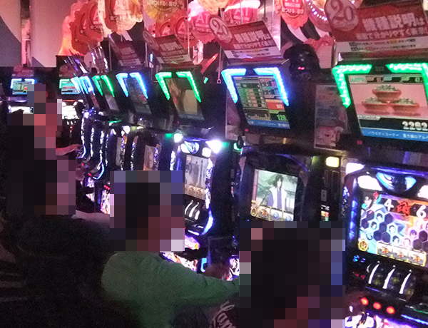 龍の存在を探るべくホール内の様子をうかがうと、多数のプレイヤーが楽しそうに遊技をおこなっていた。