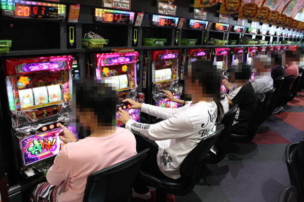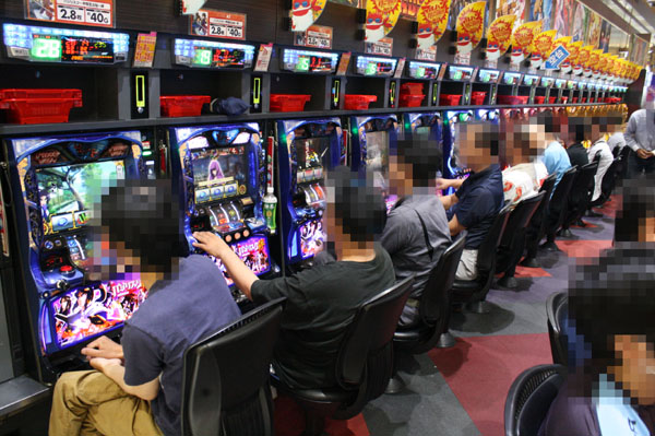 取材当日は盆休みの初日だったこともあってか、パチンコ・パチスロともに多くのプレイヤーでにぎわっていた。