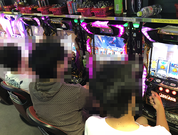 「パチスロコードギアス反逆のルルーシュR2」がフル稼働となっており、シマ全体が明るいムードに包まれていた。