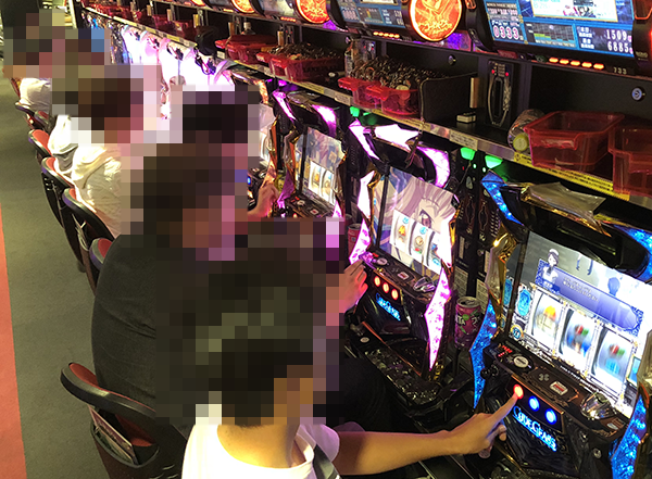 「パチスロコードギアス反逆のルルーシュR2」のみならず、さまざまな機種でプレイヤーが活躍していた「レークプラザ」。うらやましいといった感情を抱くほどの華やかな光景が広がっていた。