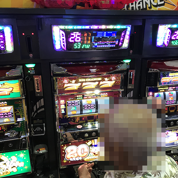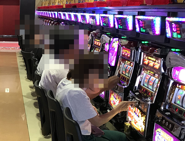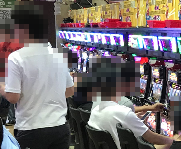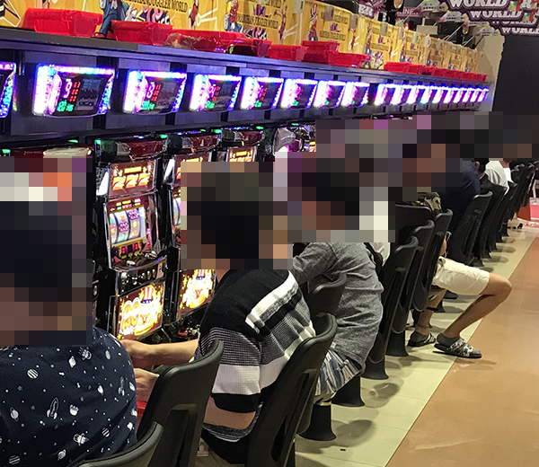 さまざまなジャグラーシリーズ機で構成されているシマに設置されており、大勢のパチスロファンが遊技を楽しんでいた。