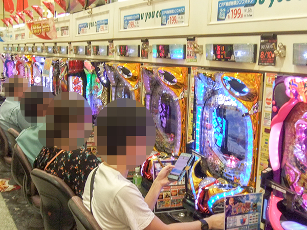 「沖ドキ!-30」や「ドリームハナハナ‐30」などの沖スロでは遊技するプレイヤーから笑みがこぼれており、各人とも充実した時間を過ごしていたことが分かる。