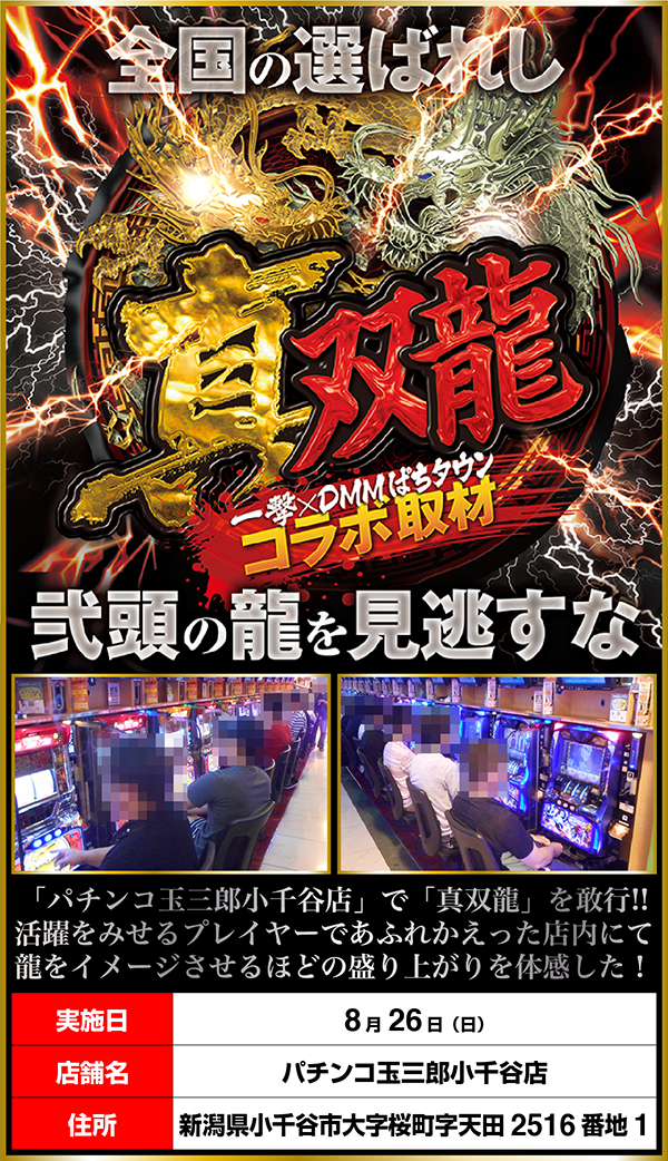 「沖ドキ!-30」を中心に盛り上がっていた「パチンコ玉三郎小千谷店」。プレイヤーの活躍は龍の姿をあらわすように華麗なものであった。