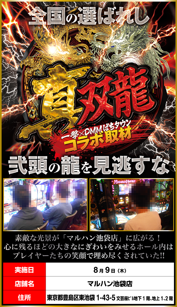 池袋駅の近くに位置する「マルハン池袋店」を舞台に「真双龍」を敢行。