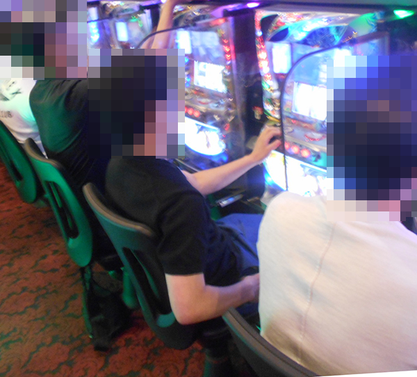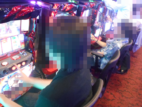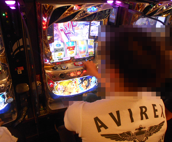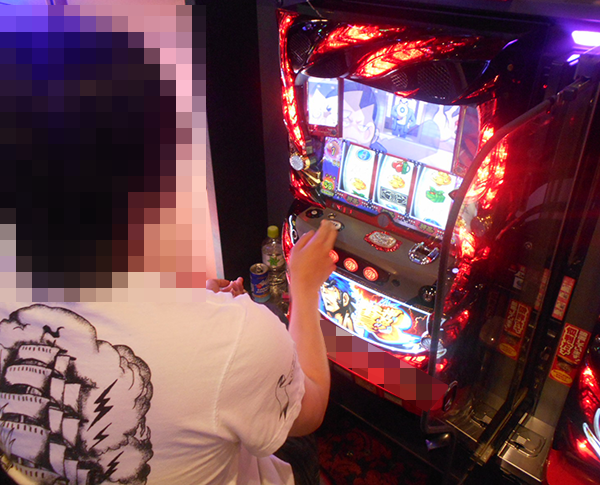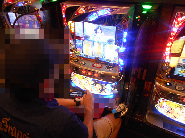 理想的ともいえる展開で遊技をおこなうプレイヤーを発見。うれしそうにレバーを叩き、ストップボタンを押すといった行動からは、満足できていることもうかがえた。