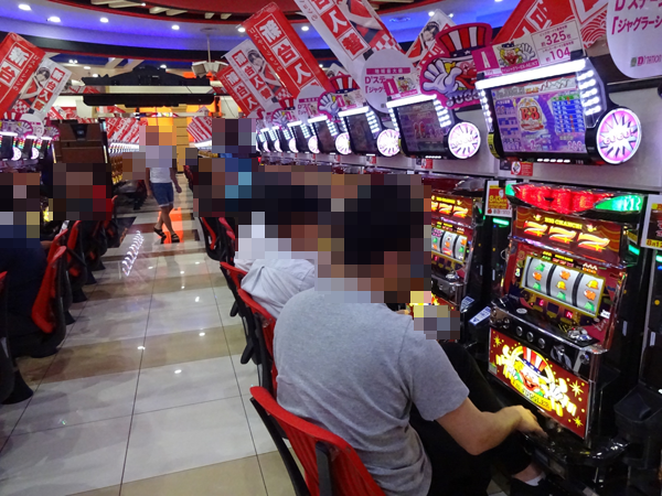 16時頃の1000円/47枚パチスロでは、「バジリスク~甲賀忍法帖~絆」や「沖ドキ!」などの支持が厚い。にこやかな表情で遊技をおこなうプレイヤーがみられ、満足度の高さがうかがえた。