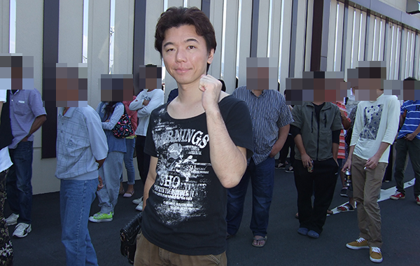 この日はパチスロライターのポロリさんが来店。並んでいる170人ものプレイヤーたちと共に、朝イチの店内へと入場をしていった。