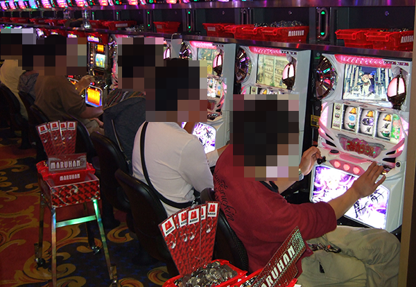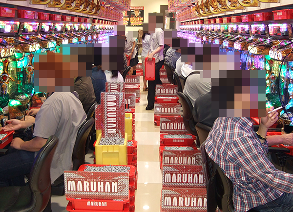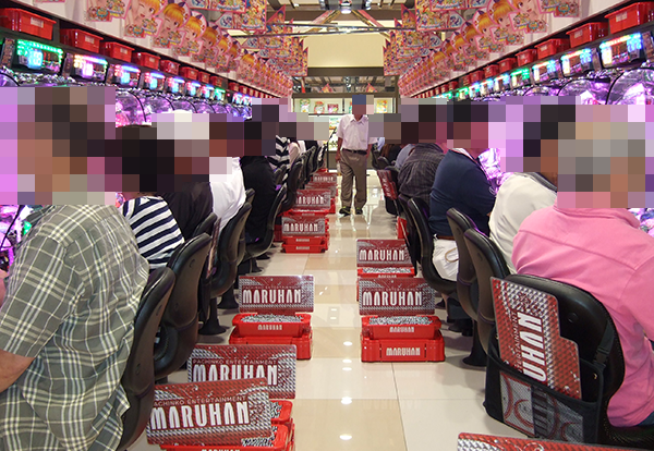 4円パチンコの賑わいも大きく、なかでも海物語シリーズには空き台もほとんどみられない。