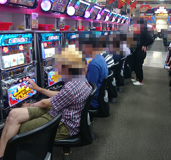 15時頃の20円パチスロをみると、「バジリスク~甲賀忍法帖~絆」や「沖ドキ!」などが注目を集めていた。シマ内に広がる華やかな光景にうらやましいと感じたプレイヤーもいたのではないだろうか。