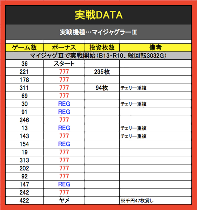 合成確率のいい『マイジャグラーⅢ』に着席。