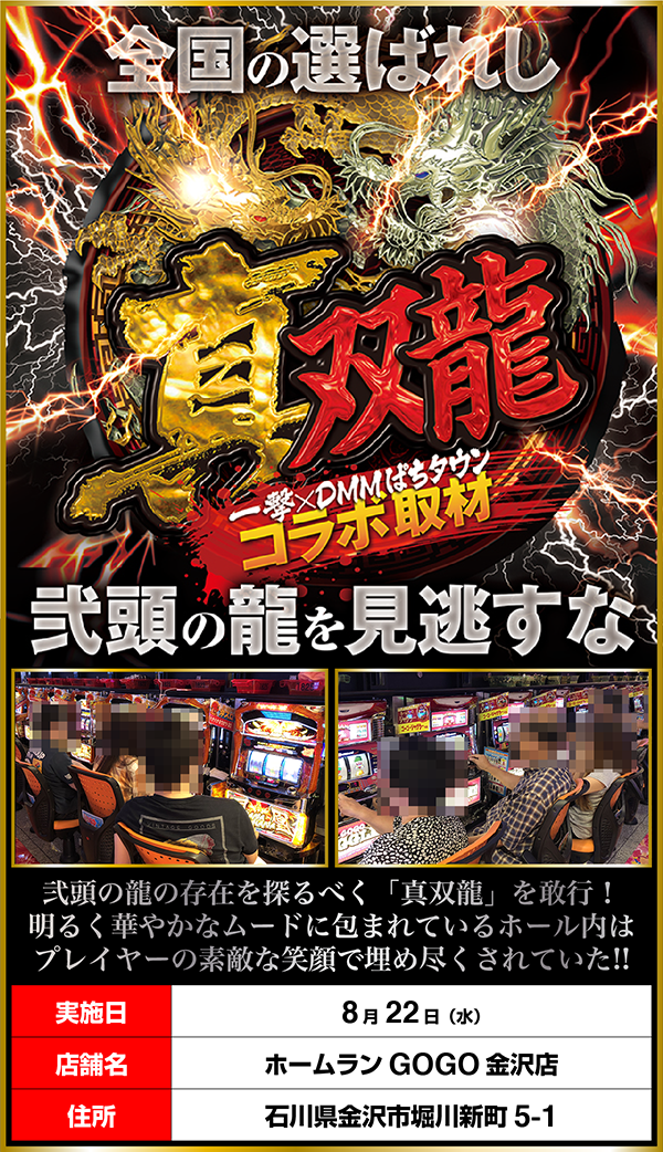 金沢駅から徒歩圏内に位置する「ホームランGOGO金沢店」で「真双龍」を敢行。
