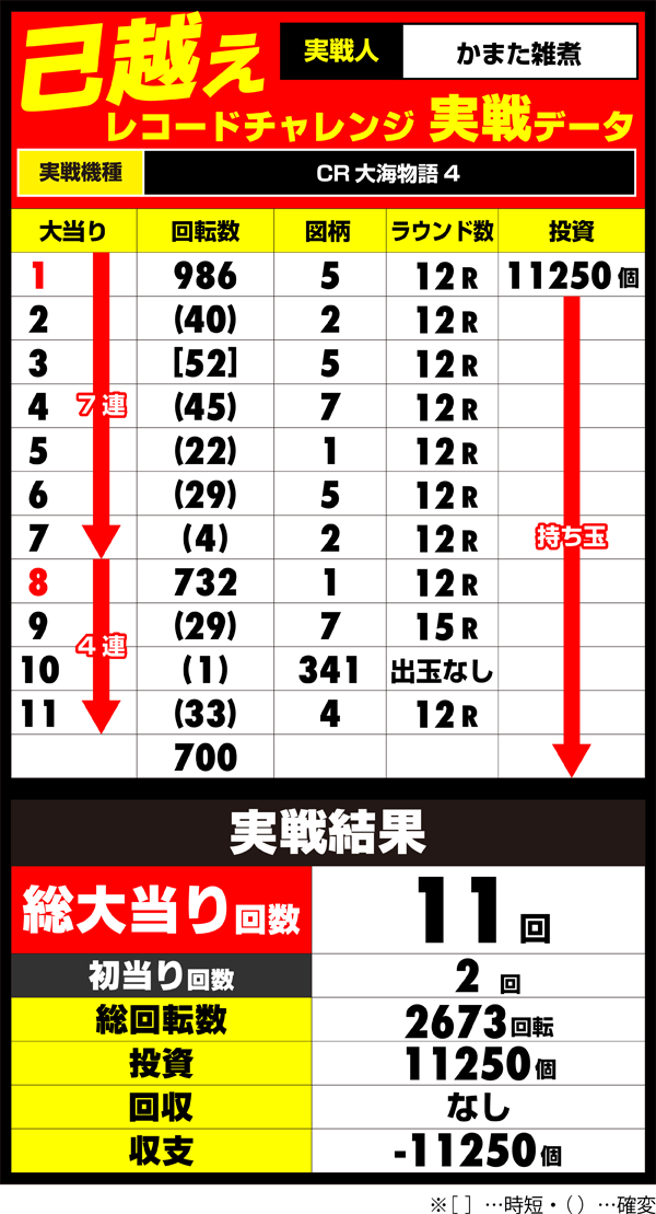 過去最高の大当り回数を越え、己の記録を刻みつける…。