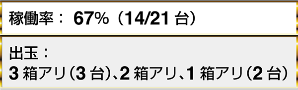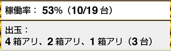 『ミリオンゴッド-神々の凱旋-』や『押忍!番長3』でも、4箱の出玉を獲得しているプレイヤーを確認した。