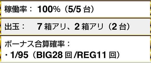 取材時にもっとも多かった獲得出玉は『ニューキングハナハナ-30』の7箱。
