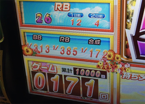 通常ならば若干遅れ気味なゲーム数だが、普段よりも2時間の余裕があることを考えると、十分に1万回転を狙えるペースだ。