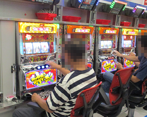 「沖ドキ!-30」で遊技をおこなうプレイヤーたちの明るい笑顔が印象的。