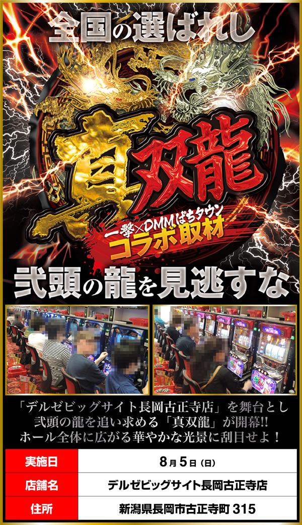 すみずみまで清掃が行き届いた快適な遊技空間も魅力的な「デルゼビッグサイト長岡古正寺店」にて、「真双龍」を敢行。