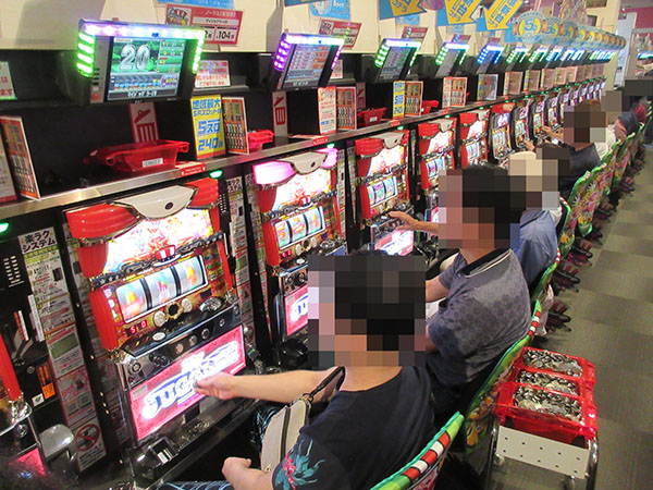 ジャグラーシリーズも好評で、空き台が少なくほとんどの席が埋まっているほど高い人気をみせつけていた。