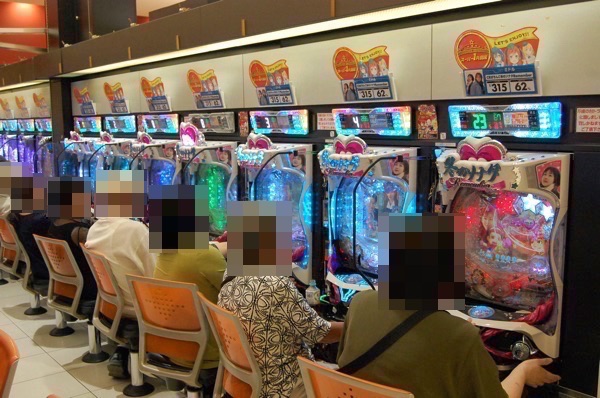 16時を過ぎた頃の1円パチンコでは、「ぱちんこCR七つの大罪」や「CR真・花の慶次2〜漆黒の衝撃 2400」、「CRぱちんこウルトラセブン2」などが大盛り上がり。イキイキとした表情で遊技する姿もみられ、心から楽しめている様子が伝わってきた。