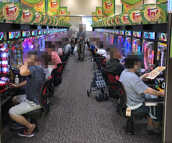 バラエティに富んだ機種構成の1円パチンコも多くのプレイヤーでにぎわっていた。