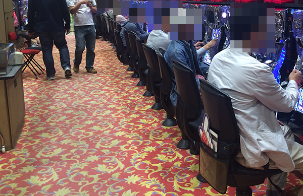 4円パチンコでは「CR牙狼 魔戒ノ花」、20円パチスロでは「パチスロ ルパン三世 ロイヤルロード~金海に染まる黄金神殿~」があっという間にほぼ満席となっていた。