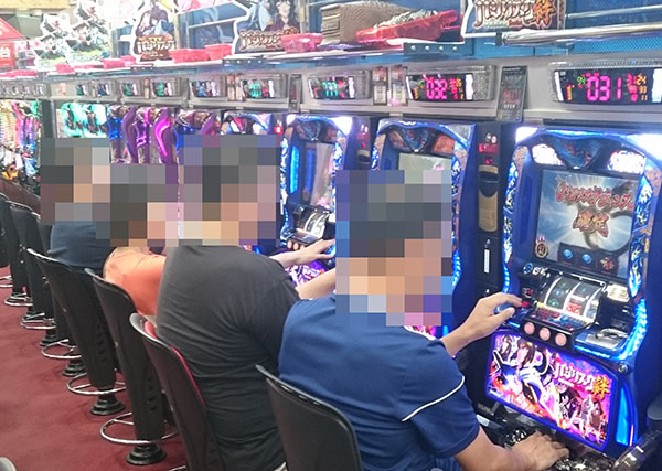 20円パチスロに目を移すと、「バジリスク~甲賀忍法帖~絆」や「ミリオンゴッド‐神々の凱旋‐」といった定番機種が好評。機種の性能を活かしたプレイヤーの嬉しそうな表情をキャッチすることができた。
