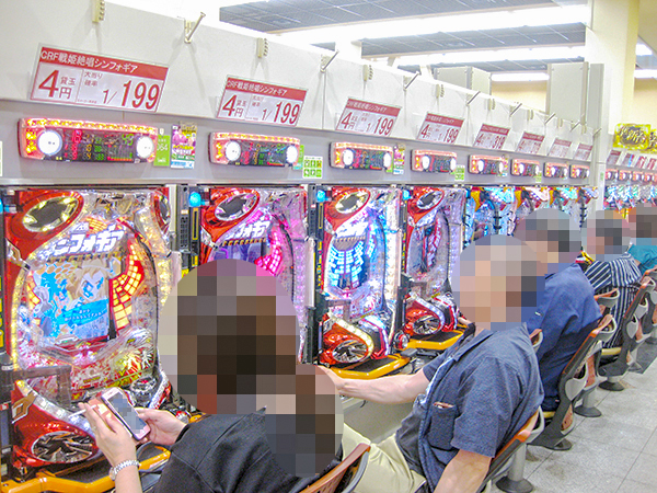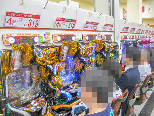17時半ごろの4円パチンコでは「CR牙狼GOLDSTORM翔」や「CRフィーバー戦姫絶唱シンフォギア」が盛況で、プレイヤーの満足そうな表情を多数確認している。