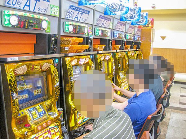 5円パチスロの注目度もかなり高く、ほぼ満席になるほどの支持を得ていた。