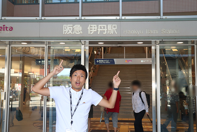 | まずは「阪急伊丹駅」の西口改札を出よう。それから外に向かえば、写真の出口がすぐに見つかるぞ。 |